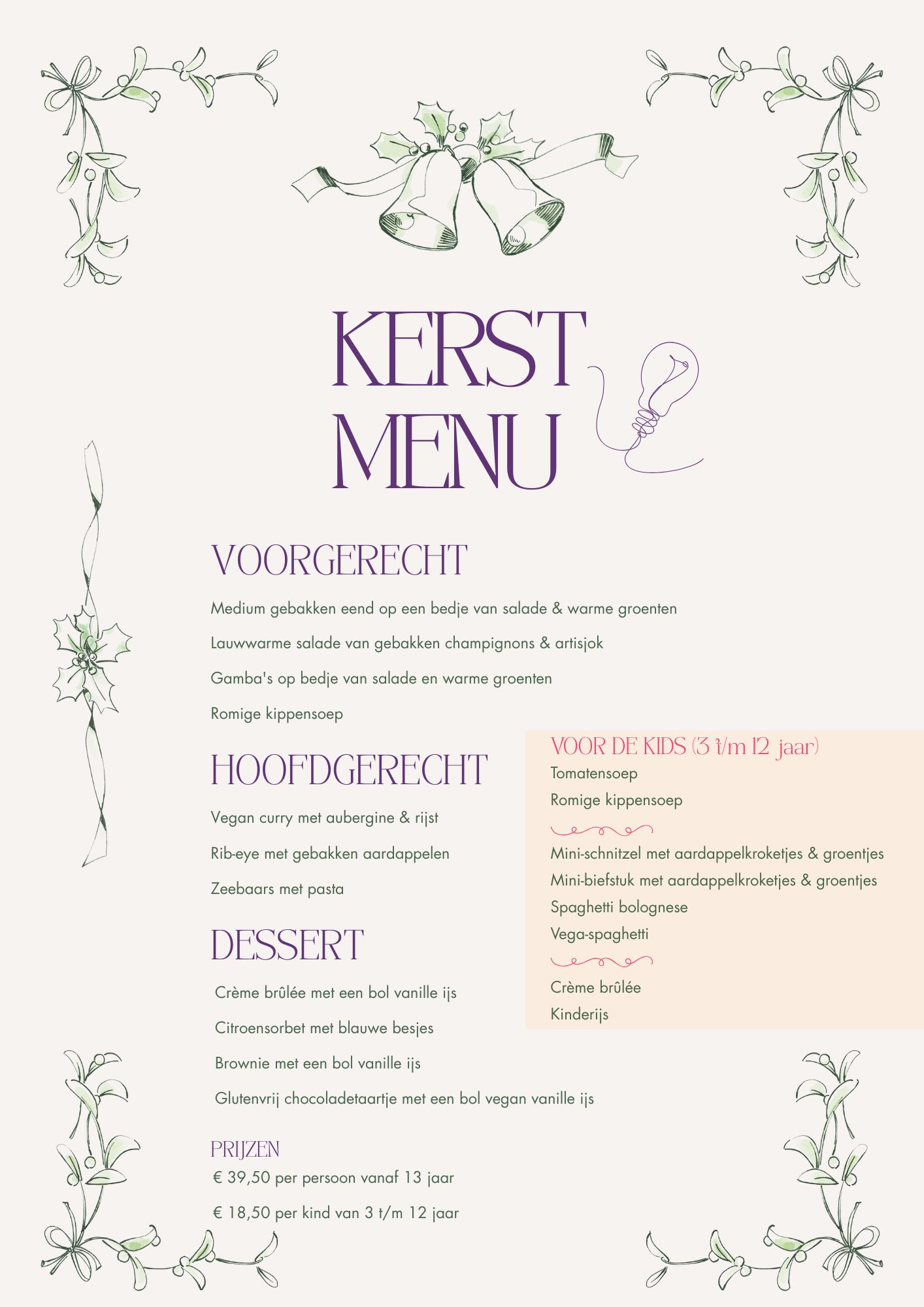 Laat je verrassen door een feestelijk kerstkeuzemenu met heerlijke gerechten en pure smaken. Of je nu komt voor een avond vol samenzijn, culinaire verwennerij of gewoon de fijne kerstsfeer: hier voel je je meteen thuis.